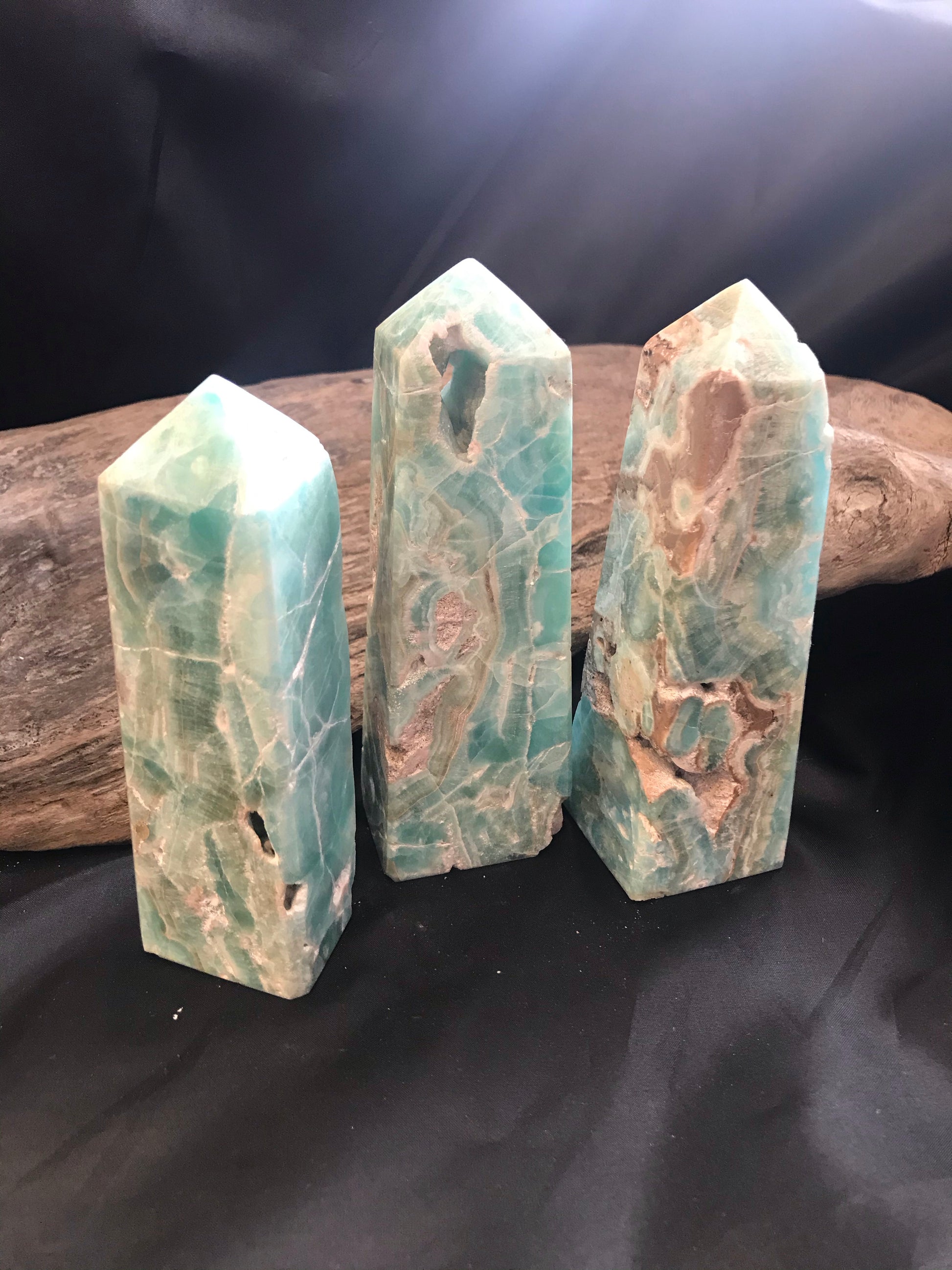 When looking into the metaphysics of this stone, I found some interesting tidbits regarding its use as a communication tool. I learned that Blue Aragonite is good to help those who struggle in speaking their needs, namely those of an emotional nature. Speaking up for yourself and allowing yourself to feel your emotions, helps you to process them and move from the lower feeling frequencies that we often bottle up. Saying what you need to say, feeling, and honoring all your feels can lead to a sense of freedom and clarity. It may also allow you to open your heart center and attract to you those who will benefit you most. In my opinion, the sheer beauty of this stone is enough to lift my mood, and as I have said before, how you feel is what matters more than anything. Check out this dreamy blue stone for yourself.