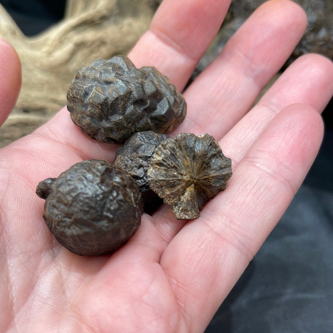 "Prophecy Stones are a very unique stone. They are a pseudomorph, Limonite / Hematite After Marcasite / Pyrite. The original Crystal Structure remains from the Marcasite / Pyrite but has morphed and the molecules changed completely into something else.